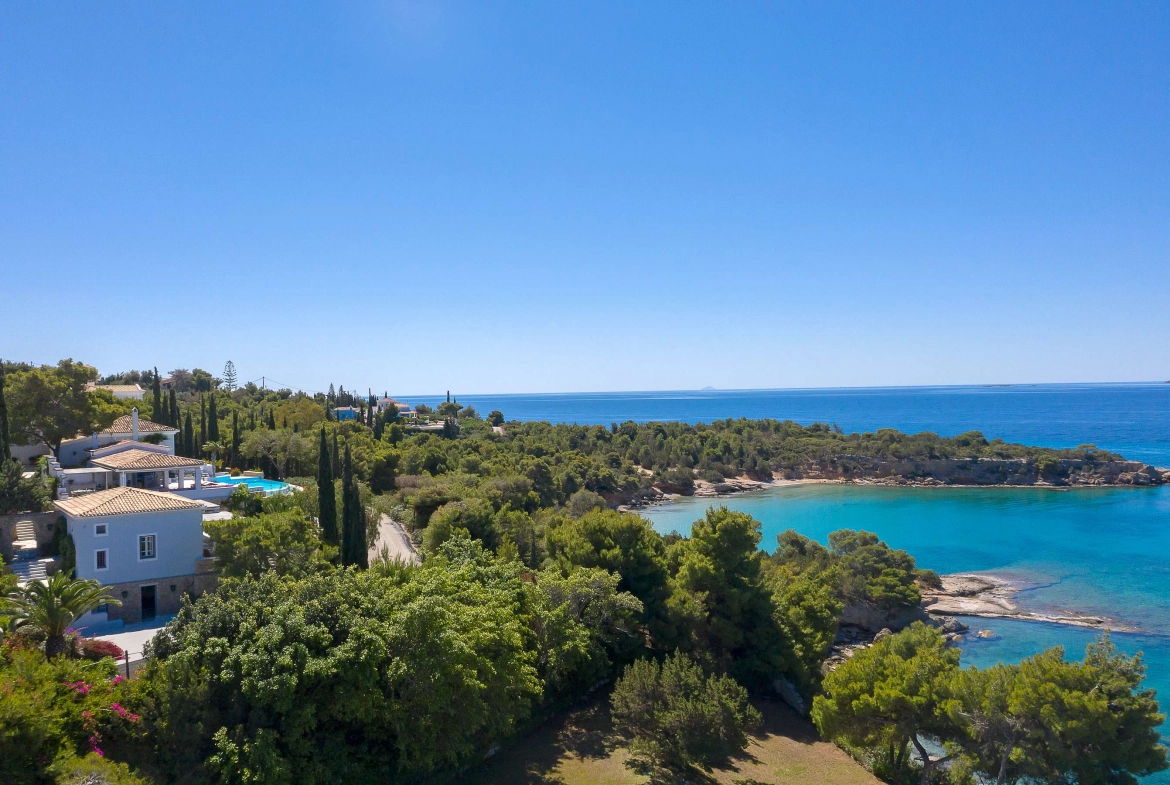 The outdoor haven extends to a bar, a professional kitchen, and a secondary shaded dining area, perfect for gatherings. Marvel at captivating views of Spetses across the water and indulge in the enchanting sunset views from this idyllic location. Villa Corsica promises a seamless blend of luxury, comfort, and natural beauty for an unforgettable escape.